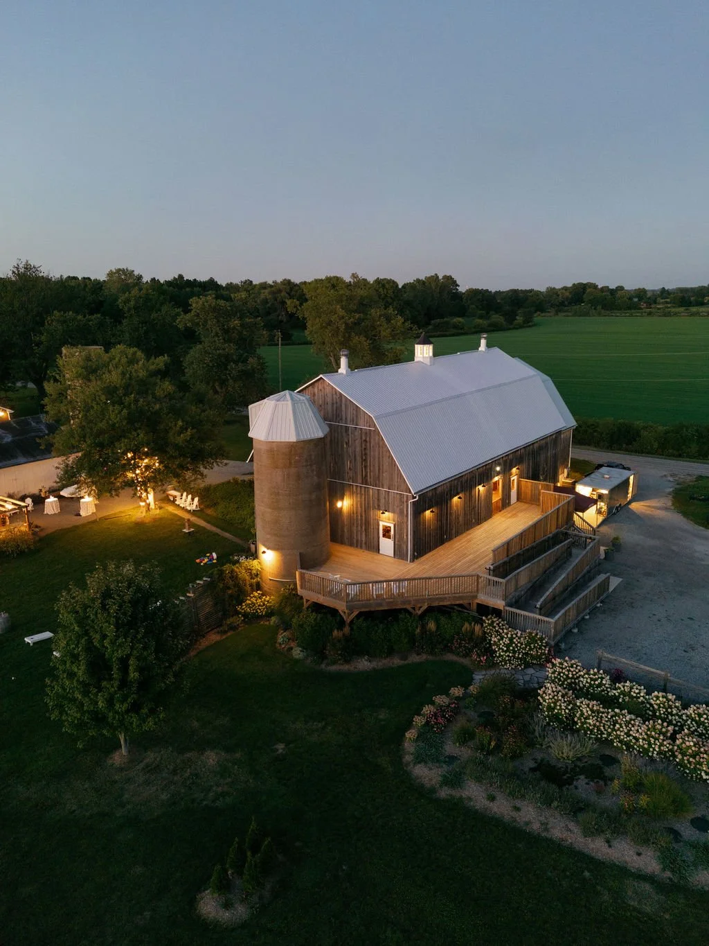 West of the barn, there’s open lawn space that’s maintained to be the perfect spot for a tent or, on a sunny summer day, a breathtaking open air ceremony with a pastoral cropland backdrop.