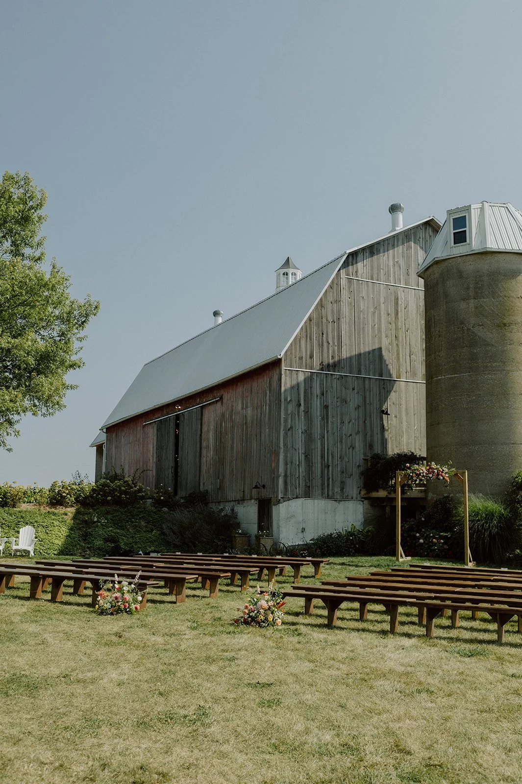 Kehoe & Kin has three outdoor ceremony options and one indoor ceremony option to choose from. Outside you can have your ceremony against our silo and gardens, against our pond and fountain or have it against our lush farm field. Inside the barn is also a lovely option for increment weather or just because you love it!